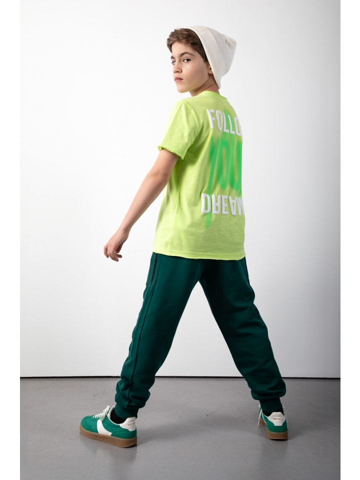 Откройте для себя лаймово-зеленую футболку с короткими рукавами, которая станет любимой вещью в гардеробе вашего ребенка. Изготовленная из мягкого и легкого хлопка, она обеспечит комфорт в течение всего дня. Насыщенный лаймово-зеленый цвет привлекает внимание, а объемный принт с вдохновляющей надписью Follow Your Dreams придает ей особый шарм.