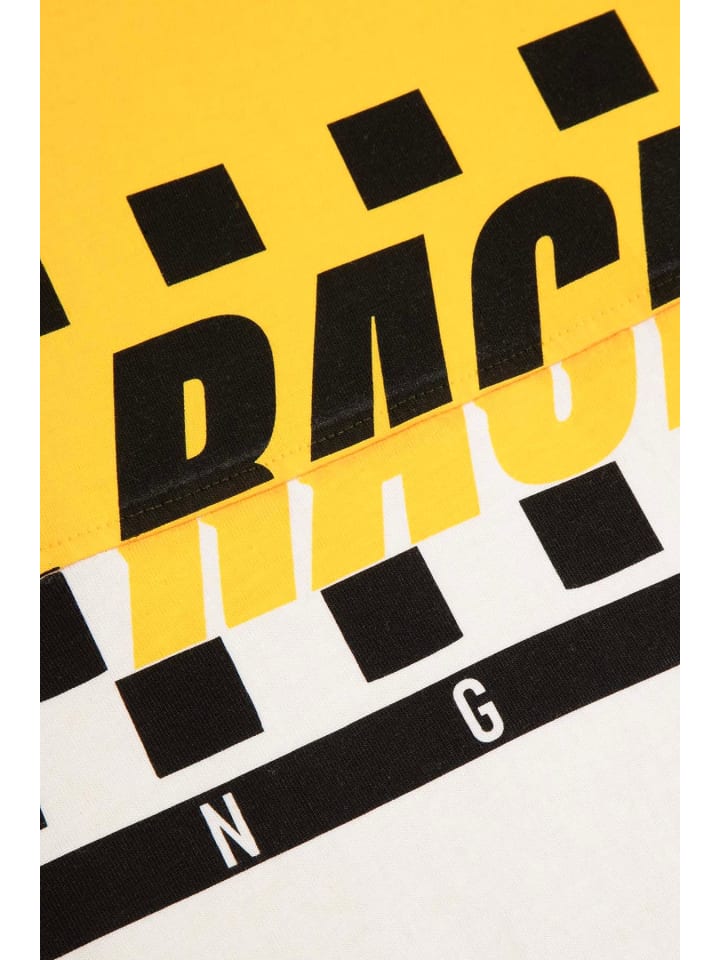 Представляем хлопковую футболку, идеально подходящую для юных любителей автоспорта! Изготовленная из тонкого, дышащего хлопка, она обеспечит комфорт на каждый день. Желтый цвет в сочетании с динамичным принтом в гоночном стиле привлечет внимание и добавит энергии любому образу.