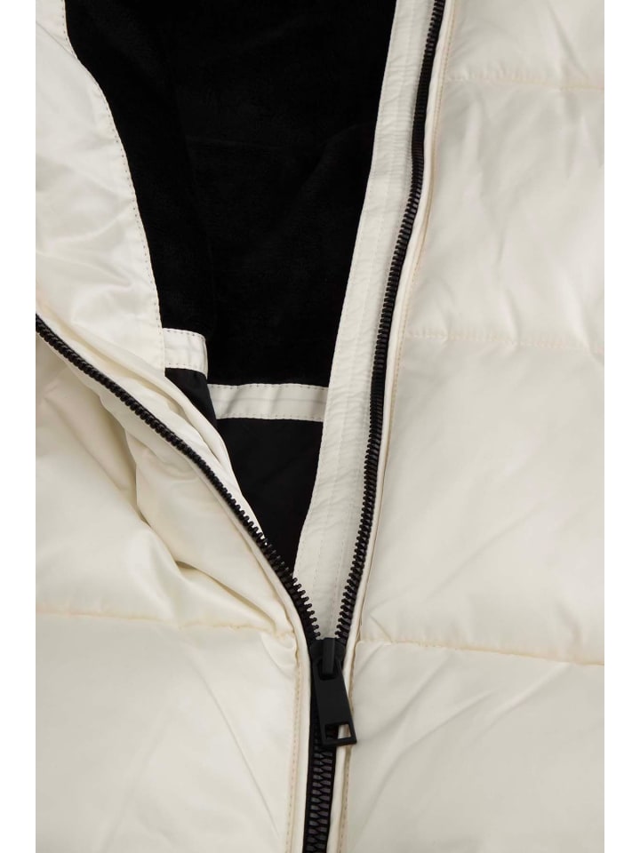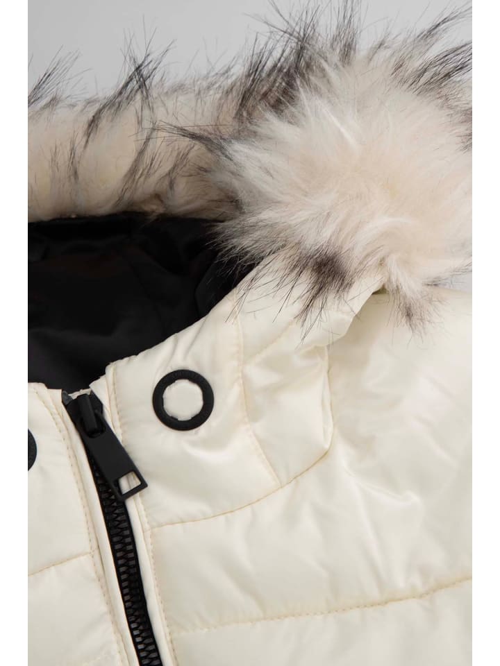 Стеганая зимняя куртка со съемным мехом. Пусть ваша дочь будет в моде и в комфорте даже в самые холодные дни! Наша стеганая зимняя куртка цвета экрю - это идеальное сочетание элегантности, функциональности и комфорта. Разработанная для повседневного использования, она идеально подходит для школы, прогулок или зимних игр. Универсальность и комфорт благодаря съемному меху. Куртка оснащена съемным мехом на капюшоне, который обеспечивает дополнительный слой тепла в холодные дни. Съемный капюшон позволяет легко адаптировать куртку к изменяющейся погоде и различным случаям - от повседневной носки до более элегантных выходов. Теплая, легкая и хорошо скроенная. Благодаря синтетическому пуховому наполнителю и легкой, но теплой подкладке куртка отлично защищает от холода, не ограничивая свободу движений. Высокий пояс в рубчик и молнии на рукавах эффективно сохраняют тепло и защищают от ветра. Безопасная и стильная. Светоотражающие принты повышают видимость вашего ребенка в темноте и обеспечивают безопасность, а ненавязчивый брендинг на рукаве добавляет модный штрих. Передние карманы практичны и удобны - идеально подходят для хранения мелких предметов или согревания рук.