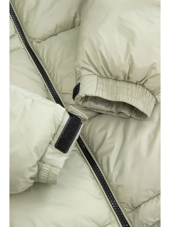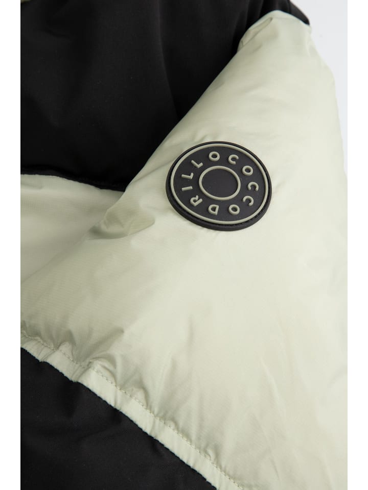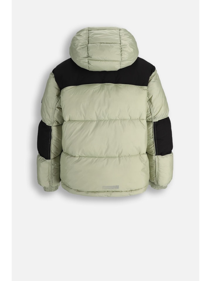 Стильная зимняя куртка с капюшоном для мальчиков. Найдите идеальную куртку для зимних приключений вашего ребенка! Наша стеганая куртка модного зеленого цвета с контрастными черными вставками сочетает в себе функциональность и стиль. Водоотталкивающая ткань и капюшон защищают от дождя и снега, а светоотражающие элементы повышают безопасность в сумерках. Куртка оснащена практичными передними карманами для мелких вещей, а также застежкой-молнией с дополнительной ветрозащитной планкой. Благодаря сертификации ECO 5B и утеплителю из переработанных материалов, она является экологически чистым выбором. Защита подбородка на молнии обеспечивает комфорт, а длинные рукава и регулируемый воротник - дополнительный комфорт. Эта куртка не только защитит от холода, но и станет стильным дополнением к гардеробу любого юного исследователя. Идеально подходит для ежедневных поездок на работу или зимних прогулок.