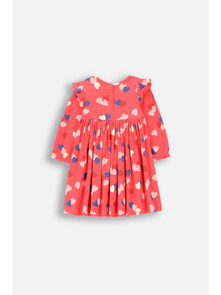 Трикотажное платье из серии HEARTS GIRL NEWBORN выполнено из трикотажного материала в виде сердечек. Платье украшено милым узором в виде сердечек, что придает ему девичье очарование. Нежные оборки на плечах добавляют стильный штрих и элегантность. Платье обеспечивает комфорт и свободу движений, идеально подходит для различных случаев.