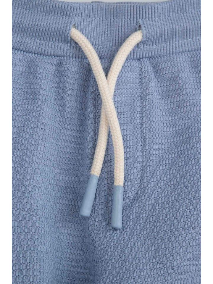 Откройте для себя комфорт и функциональность с нашими синими брюками-карго для самых маленьких. Изготовленные из мягкого фактурного трикотажа, эти брюки обеспечивают вашему ребенку свободу движений во время повседневных приключений. Благодаря эластичному поясу со шнурком они идеально адаптируются к форме тела, не сдавливая чувствительный животик.