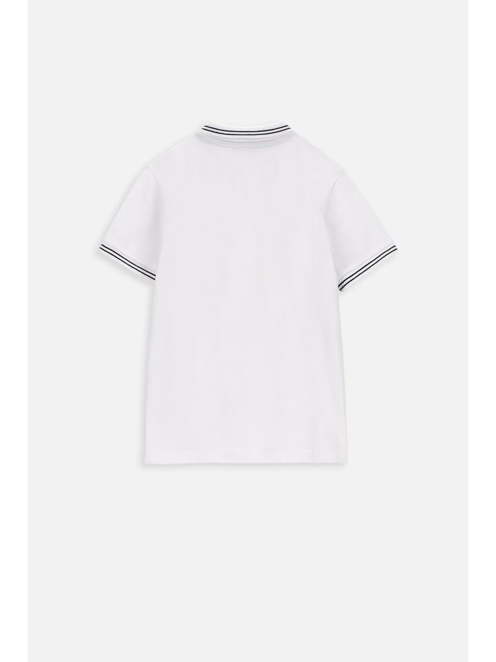 Футболка с короткими рукавами для мальчиков. Модель с аппликацией спереди. Воротник-поло. Футболка с короткими рукавами. Футболка-поло - это вневременной стандарт, сочетающий в себе элегантность и комфорт, что делает ее подходящей как для повседневной носки, так и для школы или семейных праздников. Футболка изготовлена из 100% хлопка. Эта модель из коллекции ELEGANT JUNIOR BOY пригодится вашему ребенку во многих ситуациях. Гребенной хлопок - окутайте себя мягкостью! Знаете ли вы, что 100% хлопок не всегда означает материал высочайшего качества? Прядение хлопковых волокон здесь имеет решающее значение. Одежда Coccodrillo изготавливается из гребенного хлопка, который производится с особой тщательностью - специально отобранные длинные волокна тщательно очищаются и разглаживаются, что придает им нежный блеск и уютную мягкость. Это лучший выбор для требовательной детской кожи, которая не терпит раздражения. Гребенной хлопок также намного более долговечен. Материал не скатывается и не деформируется даже после многочисленных стирок, что особенно важно для детской одежды, которая ежедневно подвергается многочисленным испытаниям. Изделие имеет сертификат EKO5 и соответствует стандарту безопасности PN-EN 14682.