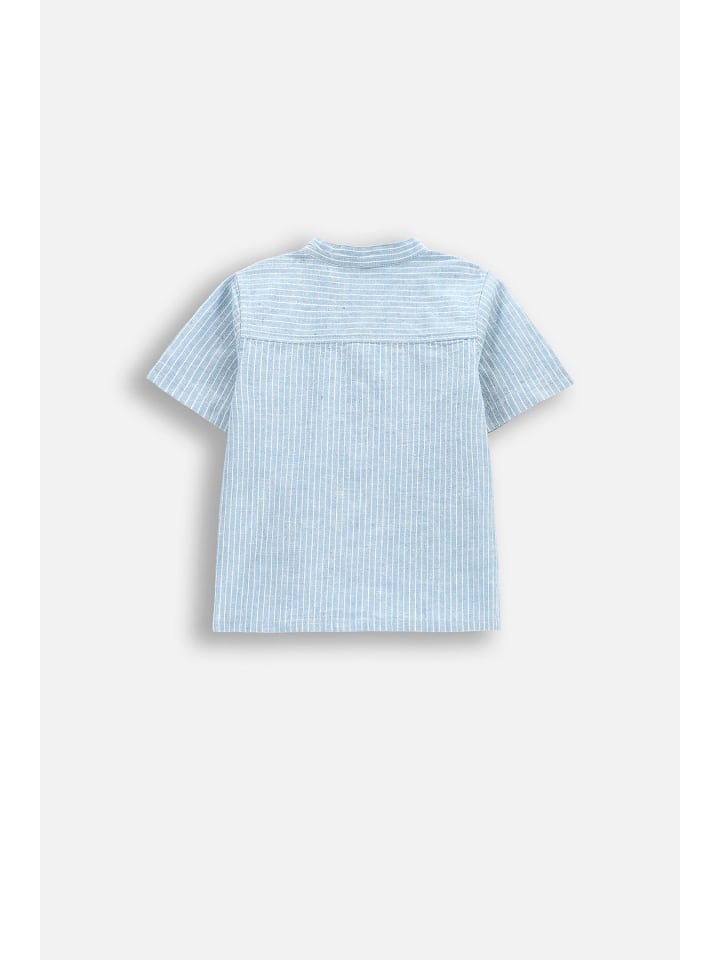Найдите идеальную летнюю рубашку для своего малыша! Эта синяя рубашка с короткими рукавами сочетает в себе стиль и комфорт. Изготовленная из высококачественной смеси хлопка и льна, она обеспечивает воздухопроницаемость и комфорт в теплые дни. Изысканный праздничный полосатый рисунок добавляет очарования, а декоративная вышивка на кармане подчеркивает ее уникальный характер.