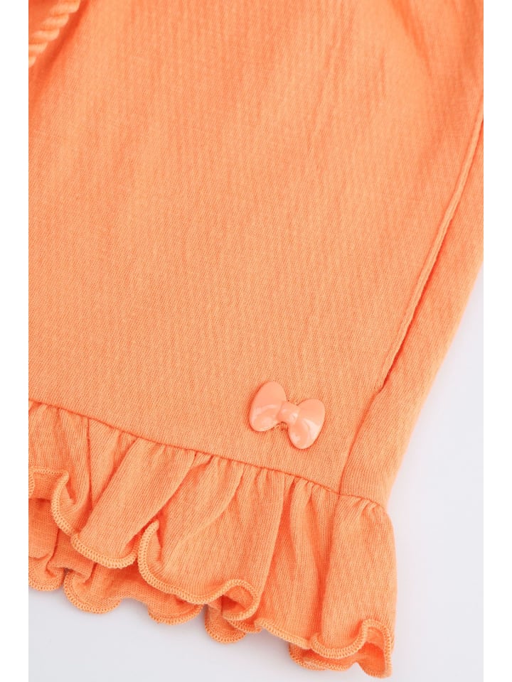 Оранжевые шорты с декоративной кулиской. Откройте для себя идеальные летние шорты для вашей маленькой принцессы! Эти милые оранжевые шорты из тонкого эластичного хлопка обеспечивают комфорт и свободу движений во время игр в теплые дни. Их яркий цвет и нежные оборки на штанинах добавляют девичьего очарования, а декоративный шнурок на талии позволяет легко регулировать посадку. Шорты с практичными карманами на штанинах идеально подходят для маленьких сокровищ вашего ребенка. Благодаря сертификации ECO 5B вы можете быть уверены, что выбираете безопасный и экологически чистый продукт. Отличный выбор для летних прогулок, вылазок на природу или игр на пляже. Выбирайте эти стильные шорты для девочек от 2 до 7 лет и оцените их качество и функциональность. Идеально подходят для любого случая, когда важны комфорт и модный вид!
