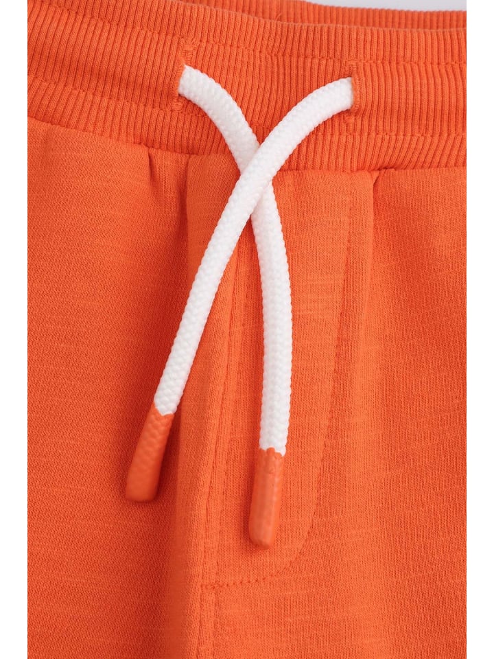 Оранжевые шорты-карго для мальчиков. Откройте для себя идеальные летние шорты для вашего маленького исследователя! Эти оранжевые шорты-карго сочетают в себе комфорт и стиль, которые понравятся любому мальчику. Изготовленные из мягкой трикотажной ткани, они обеспечивают комфорт в течение всего дня, а эластичный пояс с регулируемым шнурком обеспечивает идеальную посадку. Шорты оснащены практичными карманами на штанинах и сзади для всех сокровищ вашего маленького искателя приключений. Декоративная нашивка на кармане добавляет индивидуальности, а яркий оранжевый цвет делает их идеальным выбором для солнечных дней. Благодаря сертификации ECO 5B вы можете быть уверены, что выбираете безопасный и экологически чистый продукт. Эти шорты - не только модный предмет одежды, но и практичное решение для повседневных развлечений.