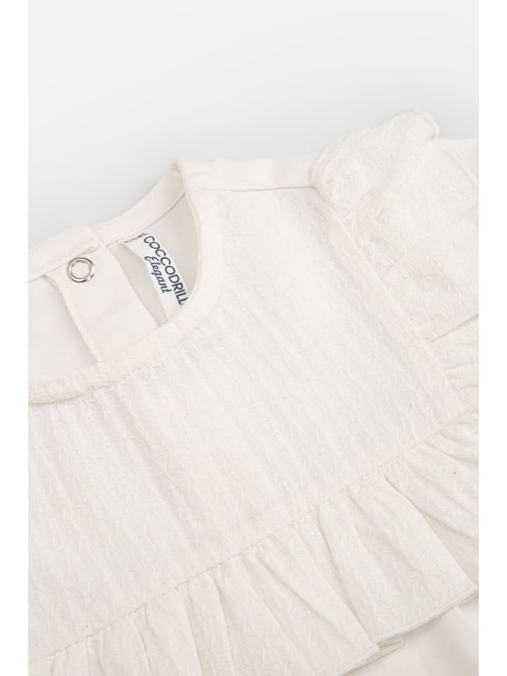 Футболка с длинным рукавом для девочек. Гладкая модель без принтов. Декоративные оборки. Футболка с длинным рукавом. Наша новая футболка с длинным рукавом понравится каждой маленькой девочке. Более того, состав материала, из которого она изготовлена, подойдет даже самым требовательным детям. Футболка из коллекции ELEGANT BABY GIRL украшена декоративными оборками, которые придают модели оригинальный вид и хорошо сочетаются, например, с юбкой. Гребенчатый хлопок - окутайте себя мягкостью! Знаете ли вы, что 100% хлопок в составе не всегда означает высочайшее качество материала? Здесь решающее значение имеет прядение хлопковых волокон. Одежда Coccodrillo изготавливается из гребенного хлопка, который производится с особой тщательностью - специально отобранные длинные волокна тщательно очищаются и разглаживаются, придавая им нежный блеск и уютную мягкость. Это лучший выбор для требовательной детской кожи, которая не терпит раздражения. Гребенчатый хлопок также гораздо более долговечен. Материал не скатывается и не деформируется даже после многочисленных стирок, что особенно важно для детской одежды, которая ежедневно подвергается многочисленным испытаниям. Изделие имеет сертификат EKO5 и соответствует стандарту безопасности PN-EN 14682.