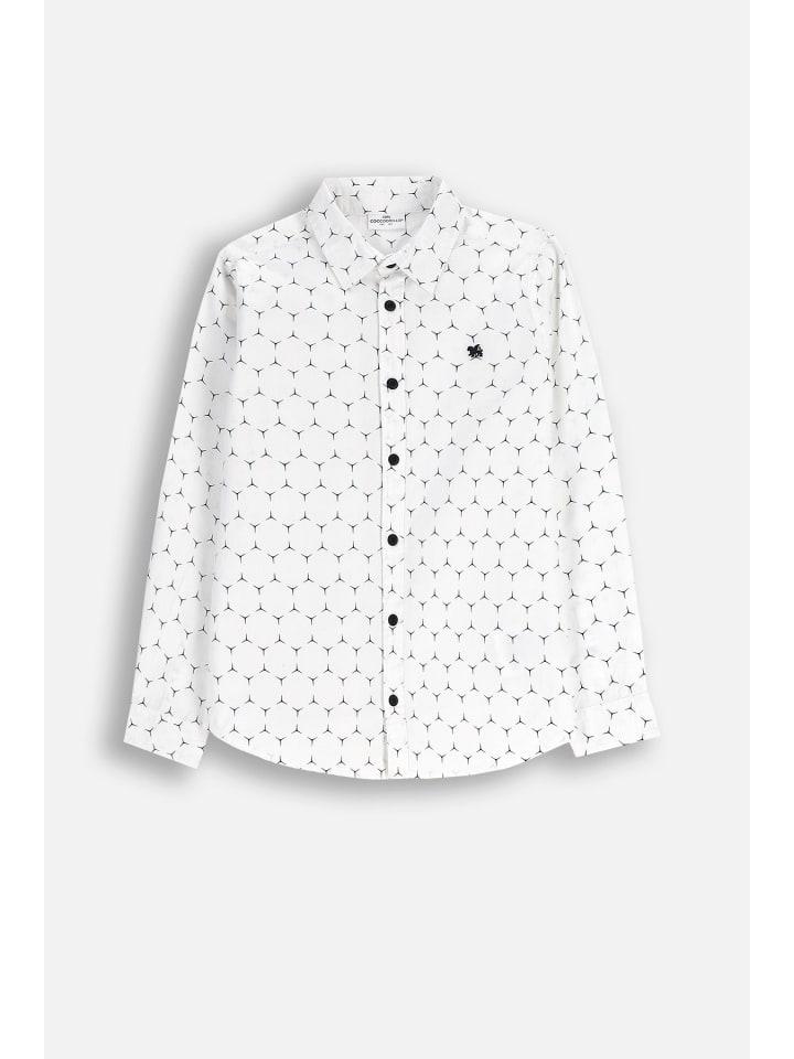 Откройте для себя уникальную рубашку для мальчиков, сочетающую в себе элегантность и современный стиль. Изготовленная из 100% хлопка, она обеспечивает комфорт и воздухопроницаемость, идеально подходя для любого случая. Белый цвет с нежным абстрактным рисунком придает ей неповторимый характер, а декоративная вышивка по всей поверхности привлекает внимание.