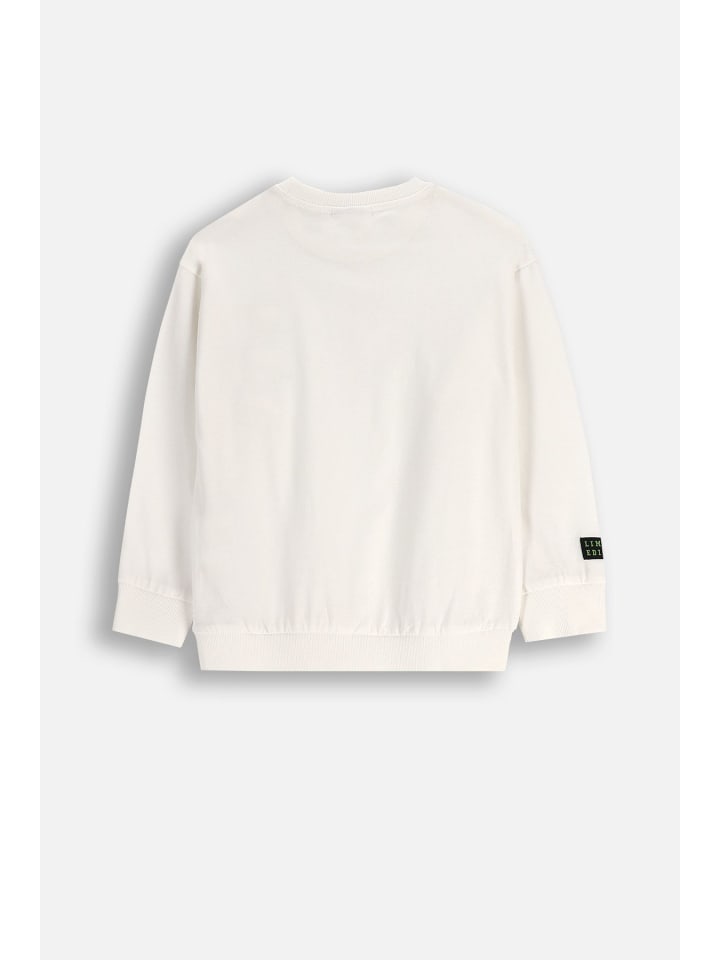 Откройте для себя уникальную футболку с длинным рукавом цвета экрю, идеально подходящую для весны и осени. Изготовленная из тонкого хлопка, она обеспечивает комфорт и воздухопроницаемость, что крайне важно для активных детей. Круглый вырез горловины добавляет классический шарм, а принт спереди и на рукавах - современный штрих.