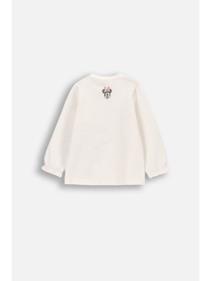 Эта футболка цвета экрю с длинными рукавами - идеальный выбор для маленьких любителей приключений. Изготовленная из эластичного, легкого хлопка, она обеспечивает комфорт и свободу движений, что крайне важно для активных малышей. Спереди изображен милый принт Минни Маус, который понравится любой девочке.