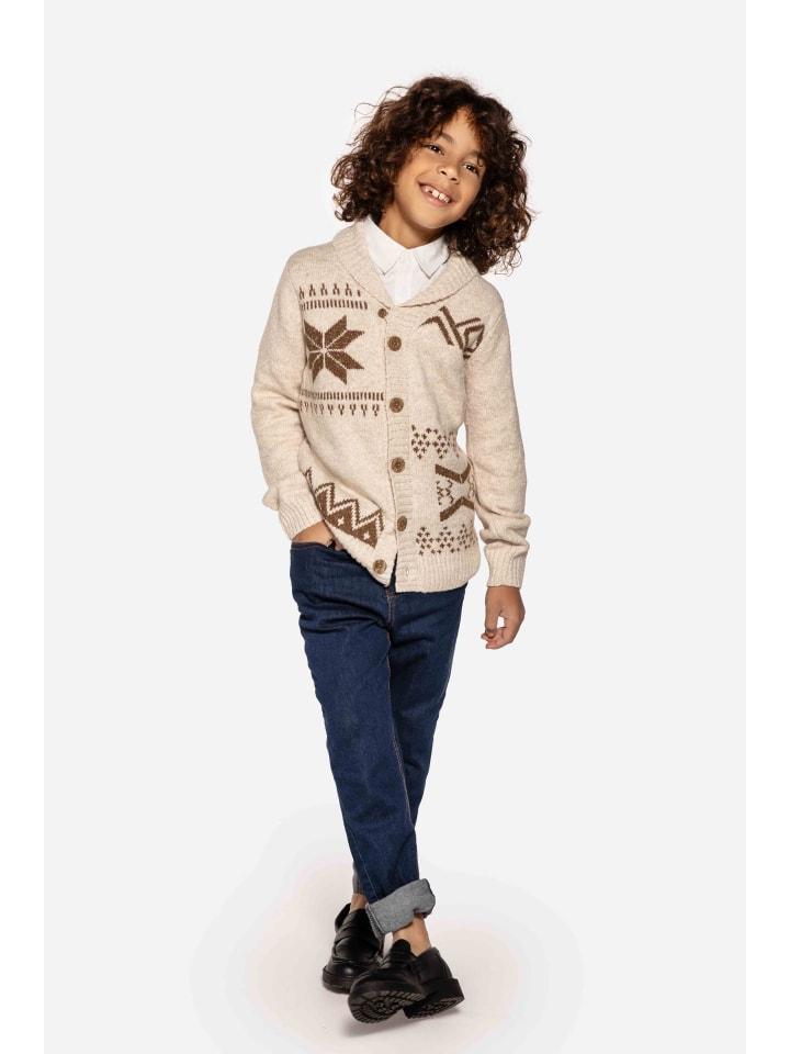 Стиль в каждой детали! Наш расстегивающийся свитер для мальчика - идеальный выбор для прохладных дней. Благодаря декоративному воротнику и стильным аппликациям этот свитер излучает индивидуальность и оригинальность. Он изготовлен из мягкого материала, обеспечивает комфорт и тепло. Эта модель из коллекции COSY BOY JUNIOR подойдет для самых разных случаев, будь то школьные или семейные встречи.