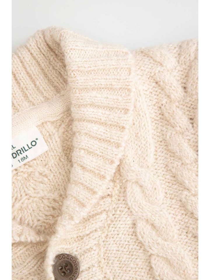 Кардиган для мальчиков. V-образный вырез. Декоративный вязаный узор. Декоративный воротник. Кардиган для мальчиков. Элегантный кардиган - отличный вариант для ношения поверх рубашки с воротником или простой футболки. Наша модель застегивается на пуговицы и имеет V-образный вырез. Кардиган также украшен декоративным вязаным узором, что придает ему оригинальный вид. Рукава и подол отделаны тонкой резинкой. Кардиган из коллекции ELEGANT BABY BOY выполнен из мягкого, не колючего материала, что делает его любимым для каждого мальчика.
