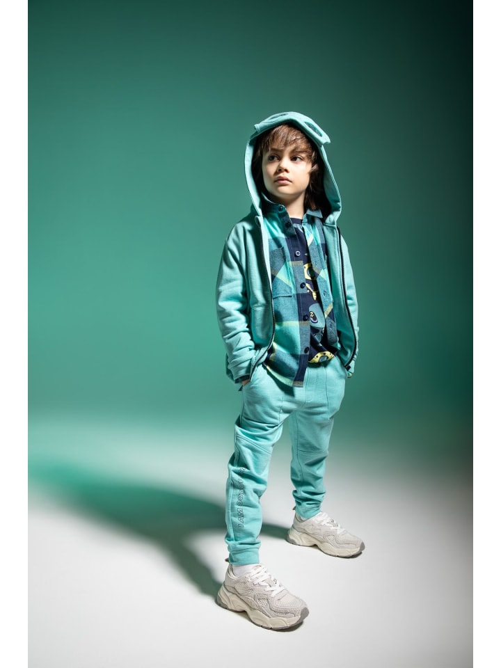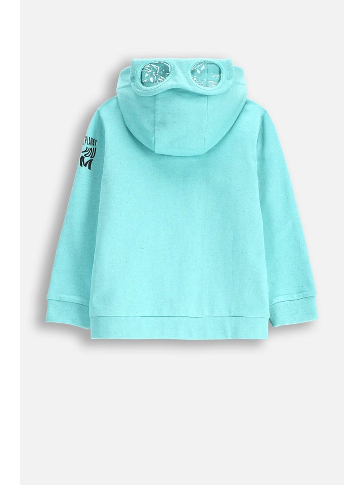 Откройте для себя бирюзовую толстовку с капюшоном, которая станет любимой вещью в гардеробе вашего ребенка. Изготовленная из мягкой ткани свитшота, она обеспечивает комфорт и свободу движений для повседневных приключений. Практичный капюшон с декоративными очками придает ей уникальный характер, а привлекательная надпись на рукаве и кармане привлекает внимание. Куртка идеально подходит для весны и осени, когда погода может быть непредсказуемой. Бирюзовая куртка с капюшоном. Надежная молния с дополнительной защитой на шее защищает чувствительную кожу вашего ребенка. Передние карманы вмещают мелкие сокровища, а сертификат ECO 5B гарантирует соответствие изделия самым высоким экологическим и этическим стандартам. Куртка доступна для детей от 2 до 7 лет, что делает ее отличным выбором для многих сезонов. Выберите эту исключительную куртку для вашего маленького исследователя, которая порадует своей прочностью и стильным внешним видом, который обязательно понравится каждому маленькому искателю приключений.