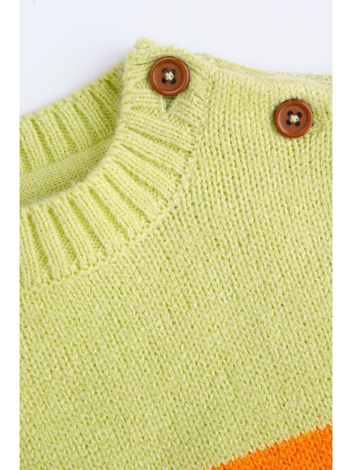 Очаровательный вязаный свитер из серии SMILE BOY NEWBORN, который надевается через голову, обеспечивая комфорт и быстрое одевание. Украшен разноцветными полосками и изображением крокодила, что придает ему жизнерадостный вид. Застежка на пуговицы на плече облегчает надевание и добавляет элегантности. Идеально подходит для прохладных дней, добавит очарования и стиля любому малышу!