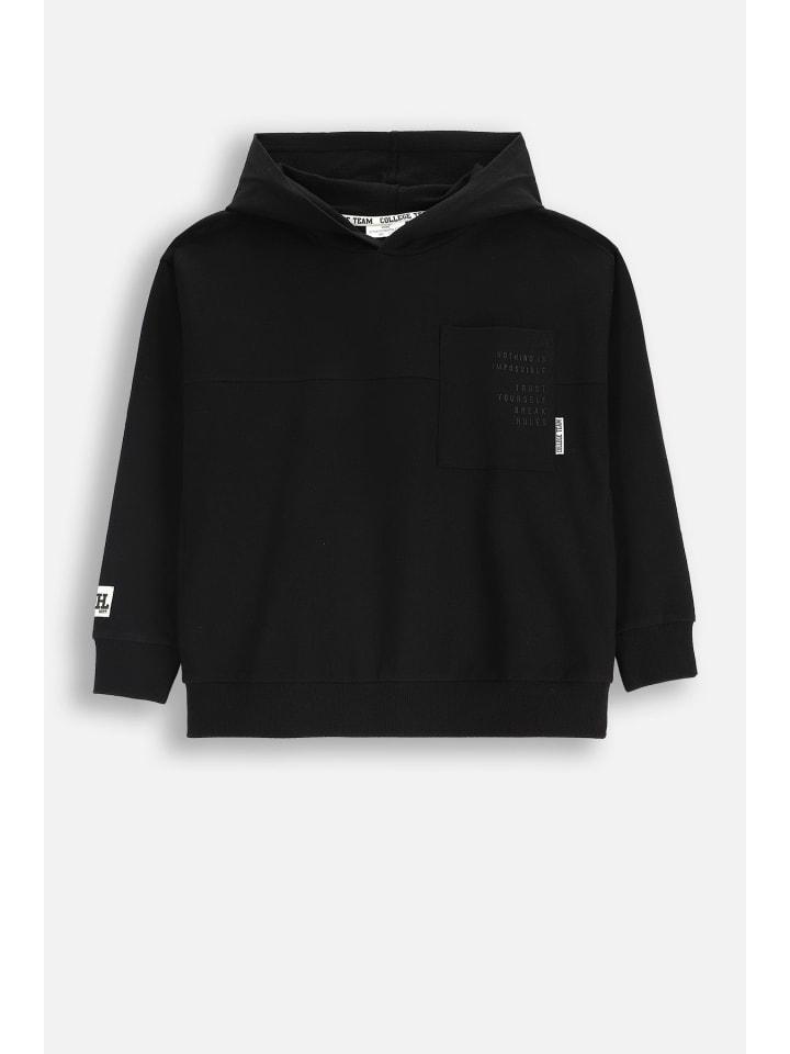 Черная толстовка с капюшоном с карманом: откройте для себя комфорт и стиль в одном с нашей черной толстовкой с капюшоном, идеально подходящей для каждого мальчика. Изготовленная из 100% мягкого хлопка, она обеспечивает приятное тепло и повседневный комфорт. Классический черный цвет делает толстовку универсальной, а практичный передний карман увеличивает ее функциональность. Модель с капюшоном - идеальный выбор для прохладных дней, поскольку она защищает от ветра и дождя. Манжеты на рукавах и подоле свитера обеспечивают идеальную посадку, не ограничивая свободу движений вашего ребенка во время игры. Свитер идеально подходит как для школы, так и для поездок на выходные. Выбирая этот свитер, вы инвестируете в качество и долговечность, которые понравятся и вам, и вашему ребенку. Это незаменимый предмет одежды, сочетающий практичность и модный вид.