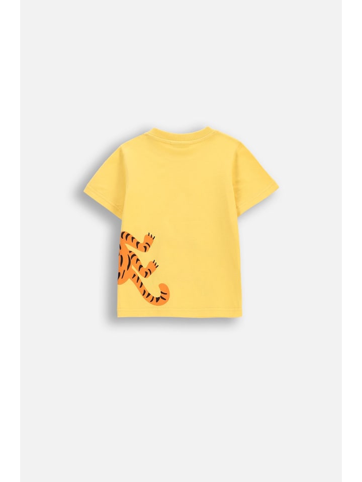 Футболка для малышей Тигр. Откройте для себя эту желтую футболку с милым изображением тигра, которая порадует любого маленького исследователя. Изготовленная из эластичного, легкого хлопка, она обеспечивает комфорт и свободу движений для летних приключений. Застежка на пуговицы и округлый вырез горловины позволяют легко надевать и снимать футболку, что чрезвычайно практично для мам. Уникальный анималистичный принт спереди и сзади добавляет футболке индивидуальности, делая ее идеальным выбором для повседневных прогулок и игр. Благодаря сертификации ECO 5B вы можете быть уверены, что изделие соответствует самым высоким стандартам безопасности и охраны окружающей среды. Эта футболка не только стильная одежда, но и олицетворяет комфорт и качество, которым вы можете доверять. Идеально подходит для мальчиков в возрасте от 1 до 18 месяцев, она идеально подходит для летних дней и обеспечит вашему ребенку комфорт и удовольствие.