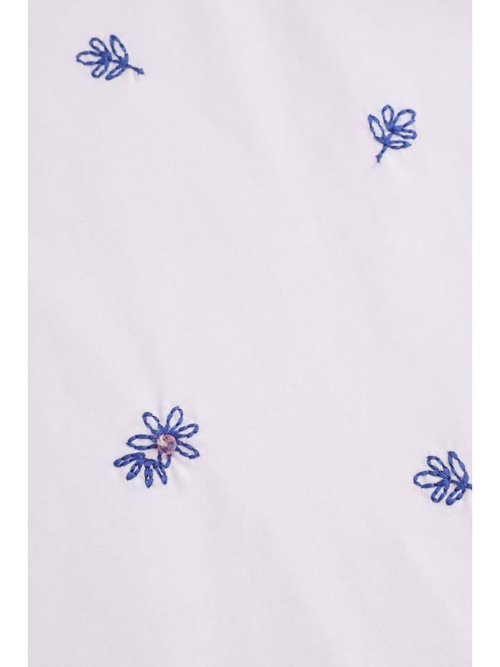 Футболка для девочек с вышивкой растений. Найдите идеальную летнюю футболку для вашей маленькой принцессы. Эта белая футболка с короткими рукавами сочетает в себе элегантность и комфорт. Изготовленная из тонкого эластичного хлопка, она обеспечит комфорт даже в самые жаркие дни. Милая цветочная вышивка украшает переднюю часть футболки, придавая ей утонченное очарование. Рукава-фонарики и круглый вырез горловины добавляют нежности, а декоративные оборки подчеркивают ее девичий характер. Эта футболка - идеальный выбор как для повседневной носки, так и для особых случаев. Благодаря сертификации ECO 5B вы можете быть уверены в соответствии изделия самым высоким стандартам безопасности и экологичности. Практичные кнопки для размеров до 98 см позволяют легко регулировать размер. Готова к использованию. Эта футболка доступна в размерах для девочек от 2 до 7 лет и станет любимой в гардеробе вашего ребенка. Выберите качество и стиль, которые понравятся каждой маленькой леди!