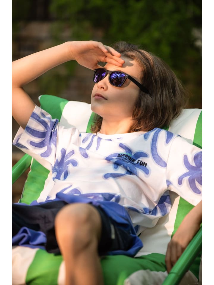 Откройте для себя радость лета с нашей футболкой для мальчиков, которая подарит вашему ребенку праздничное настроение. Изготовленная из мягкого хлопка, она обеспечивает комфорт и воздухопроницаемость в теплые дни. Белый цвет с синим принтом пальмы создает свежий летний образ, идеально подходящий для летних приключений. Футболка Пальма: эта футболка не только стильная, но и комфортная. Короткие рукава и круглый вырез обеспечивают свободу движений, что крайне важно для активных игр. Принт спереди и сзади придает ей уникальный характер, а сертификат ECO 5B гарантирует соответствие изделия самым высоким стандартам безопасности и экологичности. Эта футболка идеально подходит для летних дней, прогулок и игр на свежем воздухе, и станет идеальным выбором для мальчиков от 8 до 15 лет, которые хотят в полной мере насладиться летом. Пусть ваш ребенок почувствует себя особенным в этой модной и функциональной футболке!