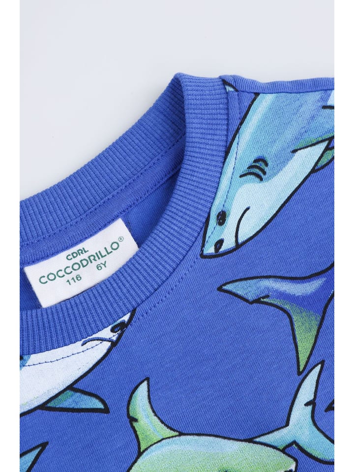 Откройте для себя мир морских приключений в нашей футболке для мальчиков цвета кобальта, украшенной энергичным изображением акулы. Изготовленная из тонкого хлопка, она обеспечивает комфорт и воздухопроницаемость, идеально подходит для веселых летних дней. Благодаря круглому вырезу и коротким рукавам ваш малыш будет чувствовать себя свободно и комфортно, играя на пляже или в парке.