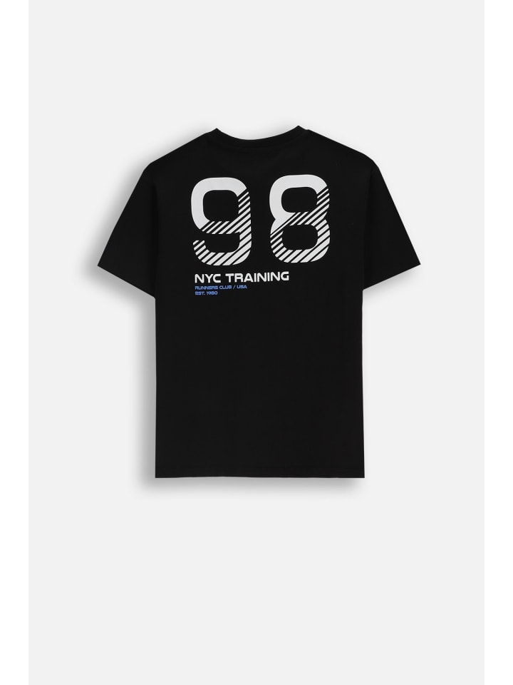 Футболка для мальчиков с динамичной надписью. Откройте для себя идеальную футболку для активных мальчиков, сочетающую стиль и комфорт. Изготовленная из мягкого, дышащего хлопка, она обеспечивает комфорт в течение всего дня. Черный цвет придает ей универсальность, а выразительная надпись спереди и сзади добавляет энергии и современности. Передняя часть футболки украшена ненавязчивыми, но яркими деталями, которые подчеркивают индивидуальность вашего ребенка. На спине большая цифра и надпись NYC TRAINING передают спортивный дух и мотивируют ребенка к активному образу жизни. Идеально подходит для повседневной носки, занятий спортом или встреч с друзьями. Эта футболка - идеальный выбор для любой мамы, которая ищет практичную и стильную одежду для своего сына. Благодаря высококачественным материалам футболка прочная и простая в уходе, что делает ее неотъемлемой частью детского гардероба.