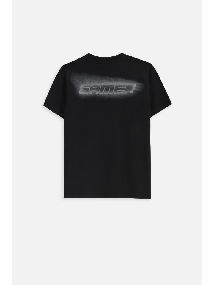 Футболка с коротким рукавом для юных геймеров. Откройте для себя черную футболку с коротким рукавом, которая порадует каждого юного геймера. Изготовленная из тонкого хлопка, она обеспечит комфорт на весь день, независимо от вида деятельности. Спереди расположен очаровательный принт с изображением фигуры с ноутбуком, придающий футболке загадочный вид. Круглый вырез горловины и свободный крой гарантируют свободу движений, делая эту футболку идеальным выбором для весны и осени. На спине футболки надпись GAMER, подчеркивающая страсть к виртуальным приключениям. Изделие сертифицировано OEKO-TEX и ECO 5B, что означает, что оно не вызывает раздражения кожи и не наносит вреда окружающей среде. Отличный выбор для мальчиков от 8 до 15 лет, которые хотят выразить свою индивидуальность через моду.