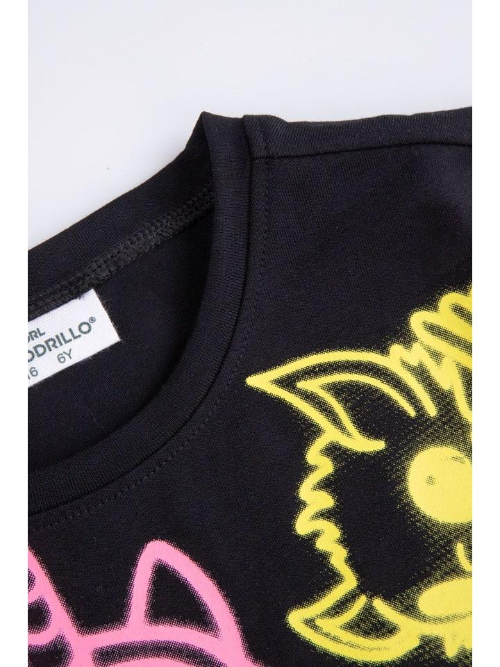 Откройте для себя эту исключительную футболку с короткими рукавами для девочек, которая обязательно станет любимой в гардеробе вашего ребенка. Изготовленная из эластичного, легкого хлопка, она обеспечит комфорт в течение всего дня. Черный фон футболки идеально контрастирует с неоновыми контурами волшебных животных, создавая яркий и привлекательный рисунок. Футболка с неоновыми животными. Эта милая футболка идеально подходит для весны и осени, а ее круглый вырез и короткие рукава обеспечивают свободу движений. Благодаря сертификации ECO 5B вы можете быть уверены, что изделие соответствует самым высоким стандартам безопасности и экологичности. Застежки-кнопки до 98-го размера позволяют легко надевать и снимать футболку, что особенно практично для маленьких детей. Футболка идеально подходит как для повседневных приключений, так и для особых случаев, и станет отличным дополнением к любому наряду.