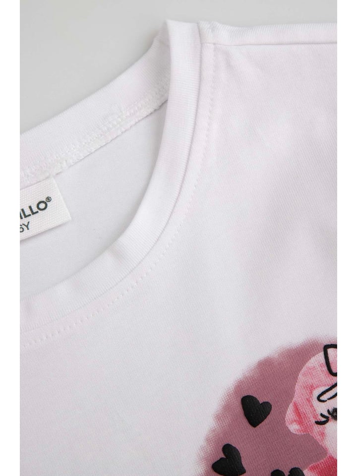 Откройте для себя эту белую футболку с короткими рукавами, которая обязательно станет любимой вещью в гардеробе вашей дочери. Изготовленная из тонкого эластичного хлопка, она обеспечивает комфорт и свободу движений, идеально подходит для весенних и осенних дней. Спереди футболка украшена декоративной нашивкой в форме сердца с милыми животными, которая порадует любого маленького любителя природы. Круглый вырез горловины добавляет классического очарования, а застежки-кнопки (до 98 размера) позволяют легко надевать футболку. Эта футболка - идеальный выбор для повседневных приключений и семейных прогулок. Благодаря сертификации ECO 5B вы можете быть уверены, что изделие соответствует самым высоким стандартам безопасности и охраны окружающей среды. Выберите качество и стиль, которые понравятся вам и вашему ребенку.