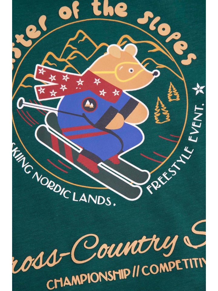 Толстовка для мальчика. Застежка на кнопку на плече. Принт спереди. Толстовка для мальчика. Эта толстовка из коллекции ELEGANT BABY BOY - идеальный выбор для маленького мальчика. Передняя часть изделия украшена принтом медведя, а кнопки на плече облегчают переодевание малыша. Рукава и подол толстовки отделаны манжетами. Сочетайте ее с джинсами или спортивными брюками для создания комфортного образа.