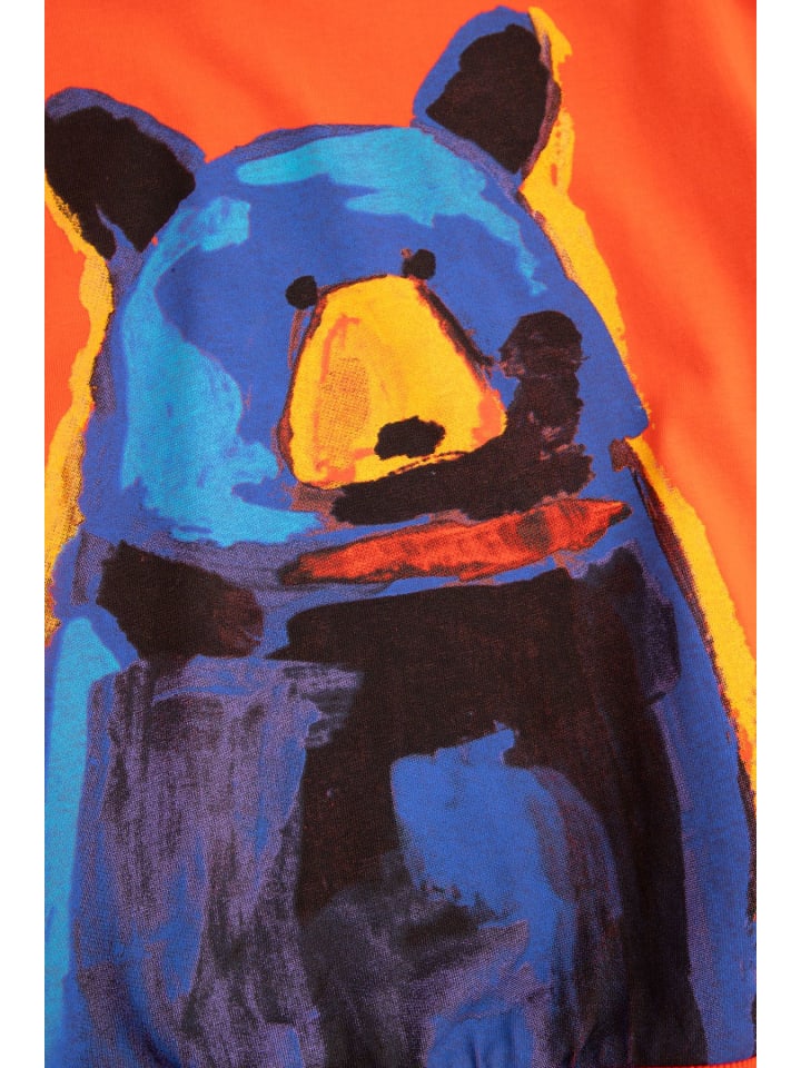 Красная футболка с длинными рукавами с изображением животных. Откройте для себя уникальную красную футболку с длинными рукавами, которая обязательно станет любимой вещью вашего ребенка. Изготовленная из мягкого и дышащего хлопка, она обеспечит комфорт даже в прохладные дни. Передняя часть футболки украшена оригинальным принтом в виде медведя, который привлекает внимание и придает изделию неповторимый характер. Круглый вырез горловины и эластичные манжеты гарантируют свободу движений, делая эту футболку идеальным выбором для повседневных приключений. Благодаря сертификации ECO 5B вы можете быть уверены, что изделие соответствует самым высоким стандартам безопасности и экологичности. Для самых маленьких (до 98 размера) предусмотрены практичные кнопки для легкого надевания. Эта футболка - идеальный выбор для зимних дней, сочетая в себе функциональность и модный дизайн. Идеально подходит как для детского сада, так и для школы. Для семейных прогулок.