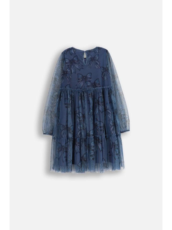 Откройте для себя элегантность и комфорт в нашем платье из тюля темно-синего цвета, идеально подходящем для особых случаев. Платье изготовлено из мягкого эластичного хлопка и декорировано фатином, обеспечивая комфорт и свободу движений. Длинные рукава и круглый вырез горловины придают ему классический шарм.