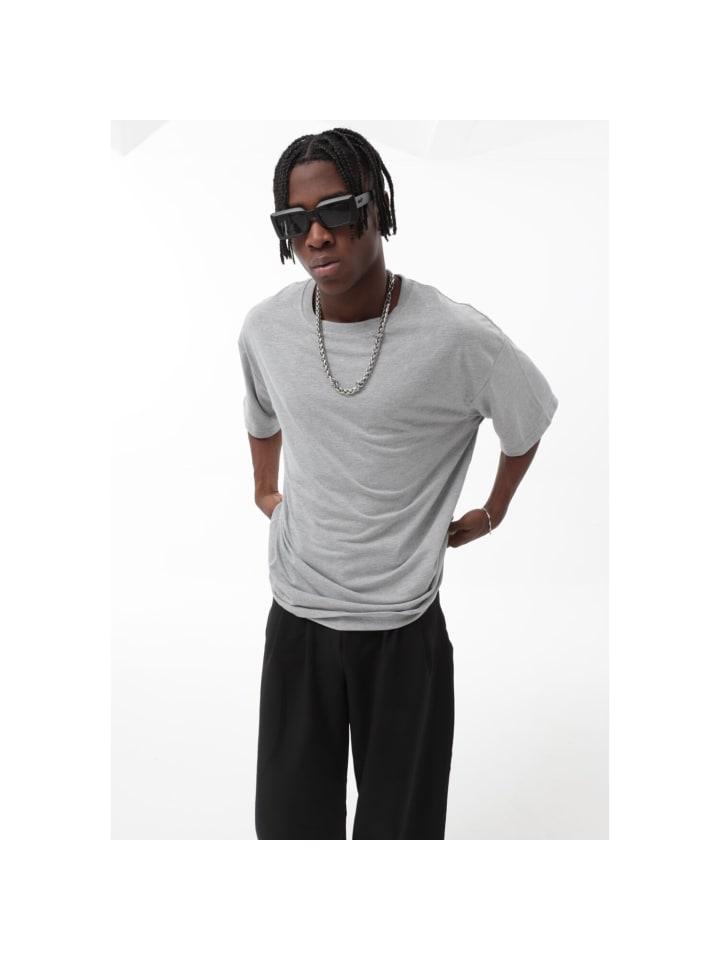 - Современный свободный крой со спущенными плечами. Эта повседневная футболка немного шире и больше. Доступна в черном, сером/белом, бежевом цветах