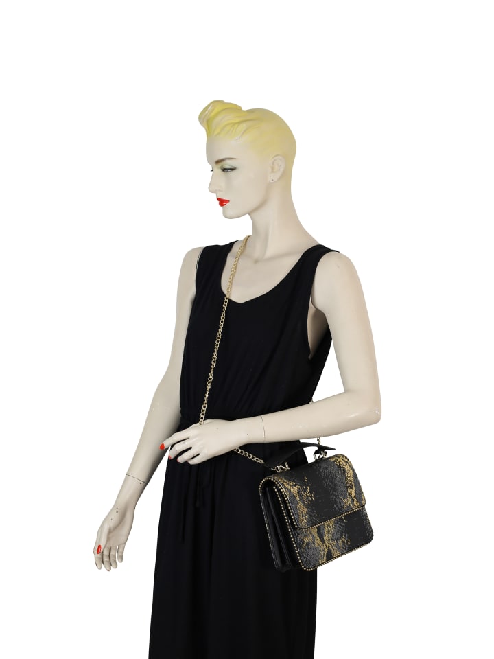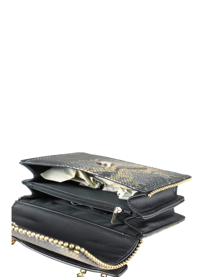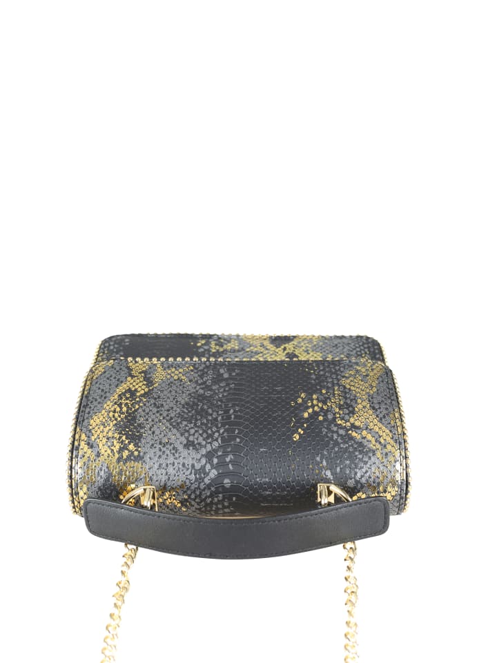 Модный дизайн с имитацией змеиной кожи и удобной ручкой. Эта сумка через плечо от Collezione Alessandro отвечает всем требованиям модницы. Материал украшен мерцающими золотыми элементами. Короткая ручка. С цепочкой через плечо.