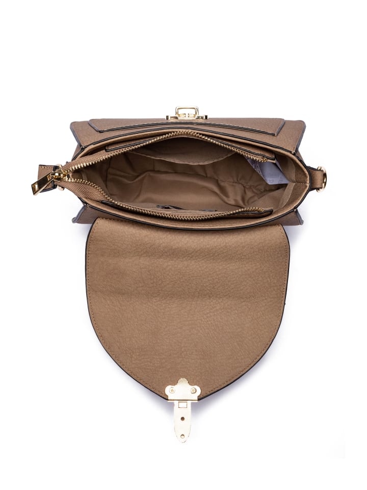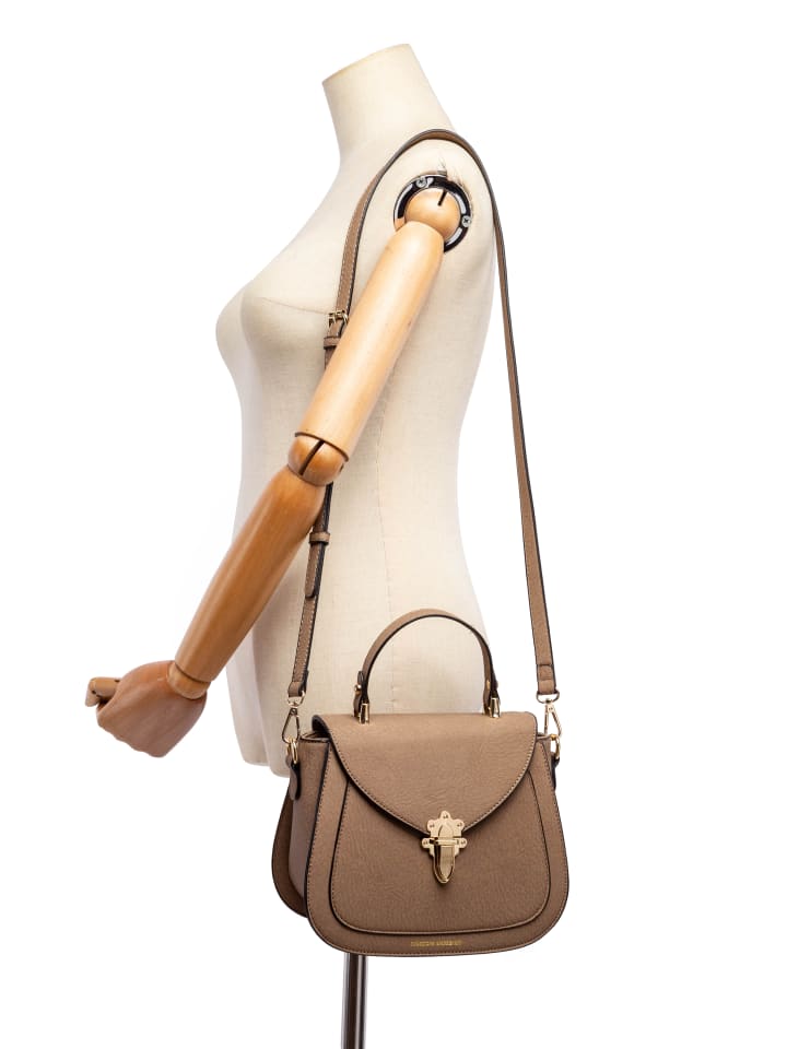 Маленькая, симпатичная сумка-тоут в ретро-стиле для повседневного использования. С винтажной застежкой и множеством карманов. Регулируемый ремешок. Небольшая ручка сверху. Сумка мягкая на ощупь.