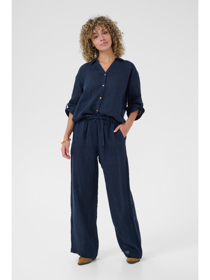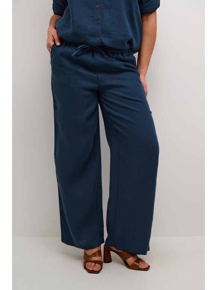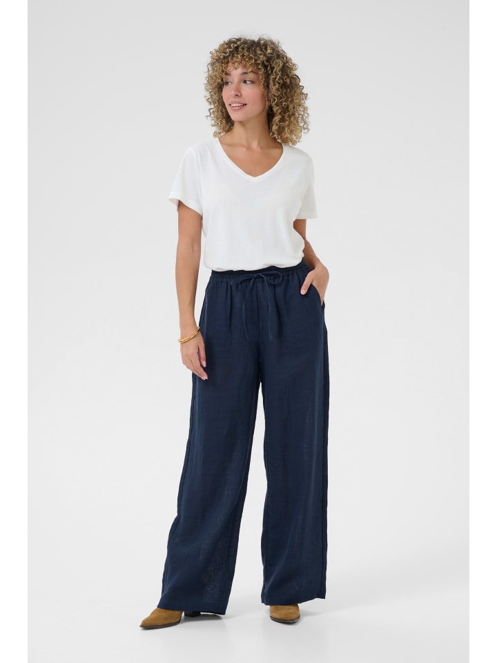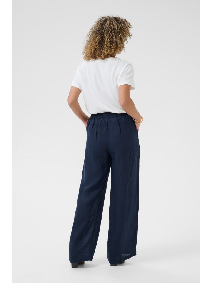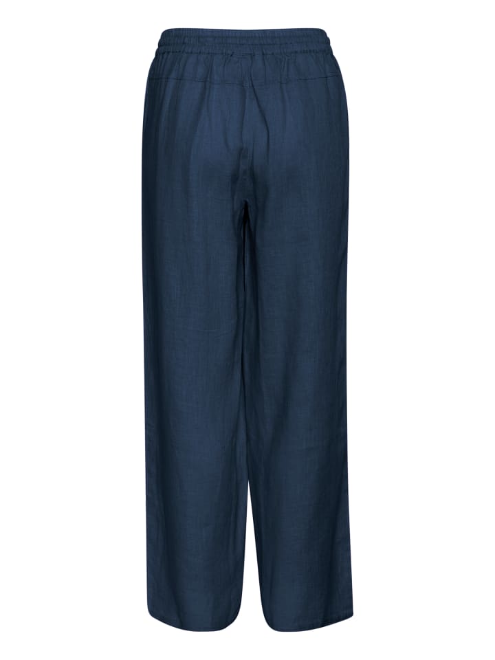 Повседневные льняные брюки широкого кроя с эластичным поясом. Они обеспечивают высокий уровень комфорта благодаря эластичному поясу и легкому, воздухопроницаемому материалу.