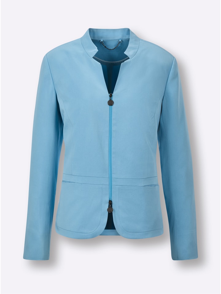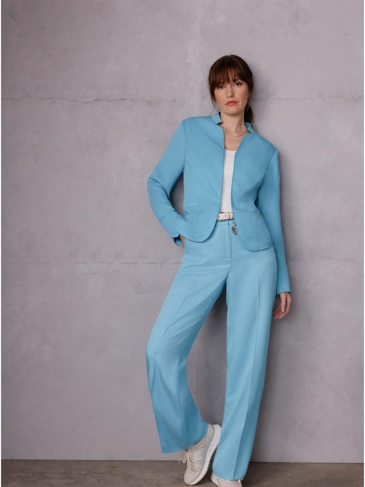 Блейзер из лиоцелла и льна - натурального материала, приятно охлаждающего кожу и просто замечательного в носке, особенно в теплые дни. Двусторонняя молния, бегунок с выгравированным логотипом и карманы в швах. Ажурные швы создают превосходную посадку. Изысканная внутренняя отделка.