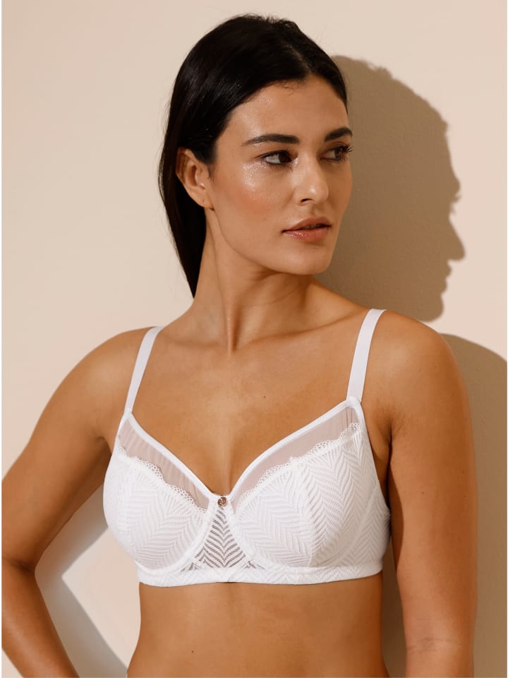В нашей модели ANGELIT: бюстгальтер на косточках от Wäschepur. Чашечки из трех частей отделаны эффектным кружевом. Прозрачная вставка вдоль выреза соблазнительно приоткрывает кожу. Блестящие бретели регулируются сзади.