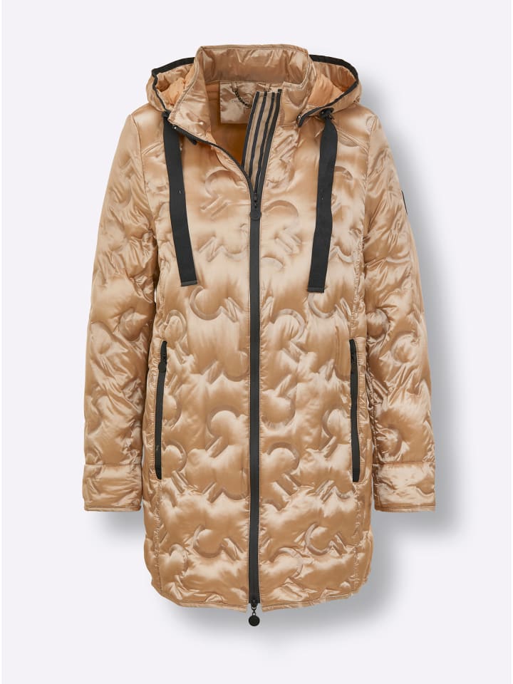Эта пуховая куртка впечатляет своей ультралегкостью, теплом и комфортом, элегантным мерцающим двухцветным дизайном и экстравагантным инновационным тиснением логотипа. Черные молнии, кнопки и репсовая лента на капюшоне создают привлекательные контрасты. Бегунок молнии украшен тисненым логотипом. Регулируемый капюшон со съемными кнопками. Воротник-стойка застегивается на ветрозащитную двустороннюю молнию на подкладке. Два кармана на молнии в присборенных швах. Внутренняя часть тщательно отделана кантом и металлической цепочкой для подвешивания. Нашивка с логотипом на плече.