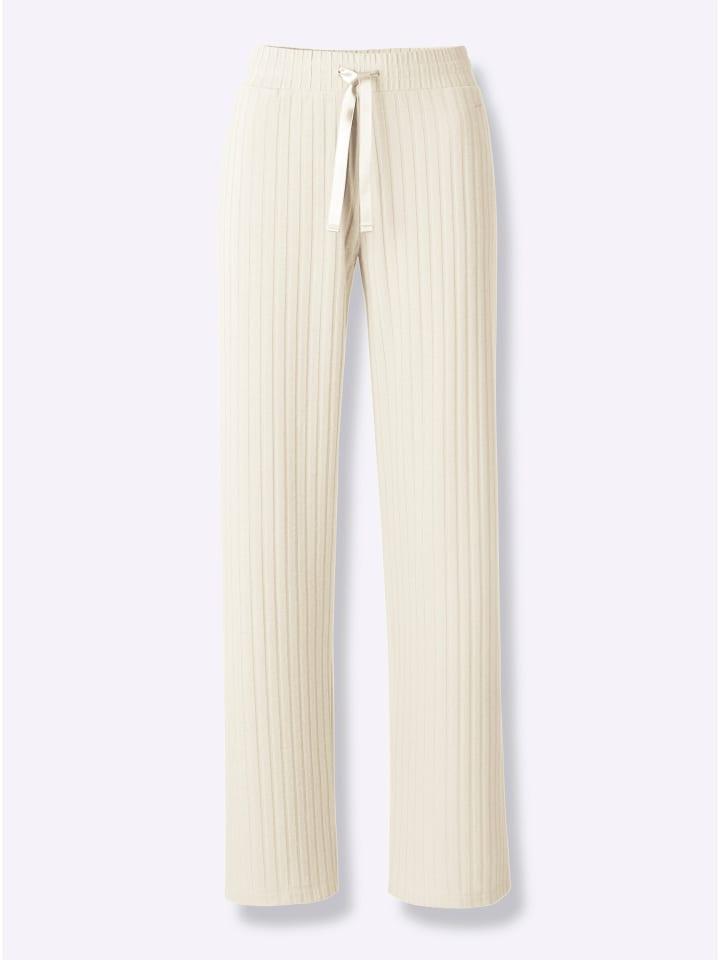 Привлекательные брюки в рубчик из мягкой, приятной на ощупь смеси переработанного полиэстера. Приталенный пояс со шнурком и завязкой. Декоративная металлическая нашивка с логотипом. Боковые карманы. Прямые брючины.