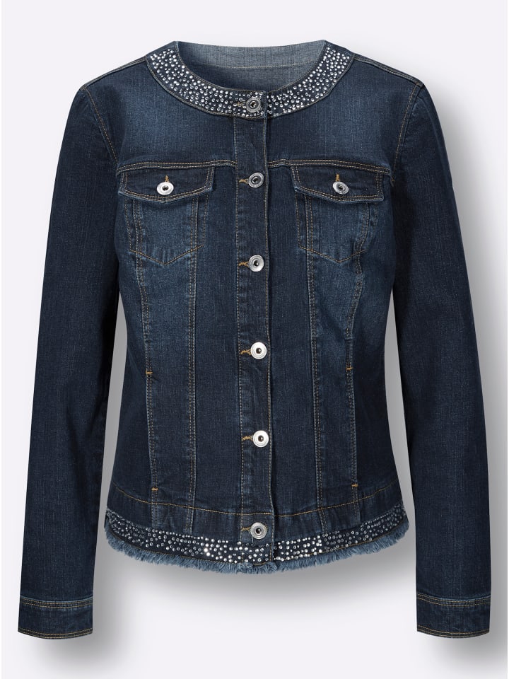 Классика этого сезона богато украшена: летний джинсовый блейзер с отделкой из сверкающих стразов на широком круглом вырезе и подоле, дополненный модной бахромой. Он отличается современной стиркой, застежкой на пуговицы по всей длине, декоративными карманами с клапанами и длинными рукавами с манжетами. Фасонные швы придают ему прекрасную форму. Ваша покупка поддерживает инициативу Сделано в Африке (Cotton Made in Africa).