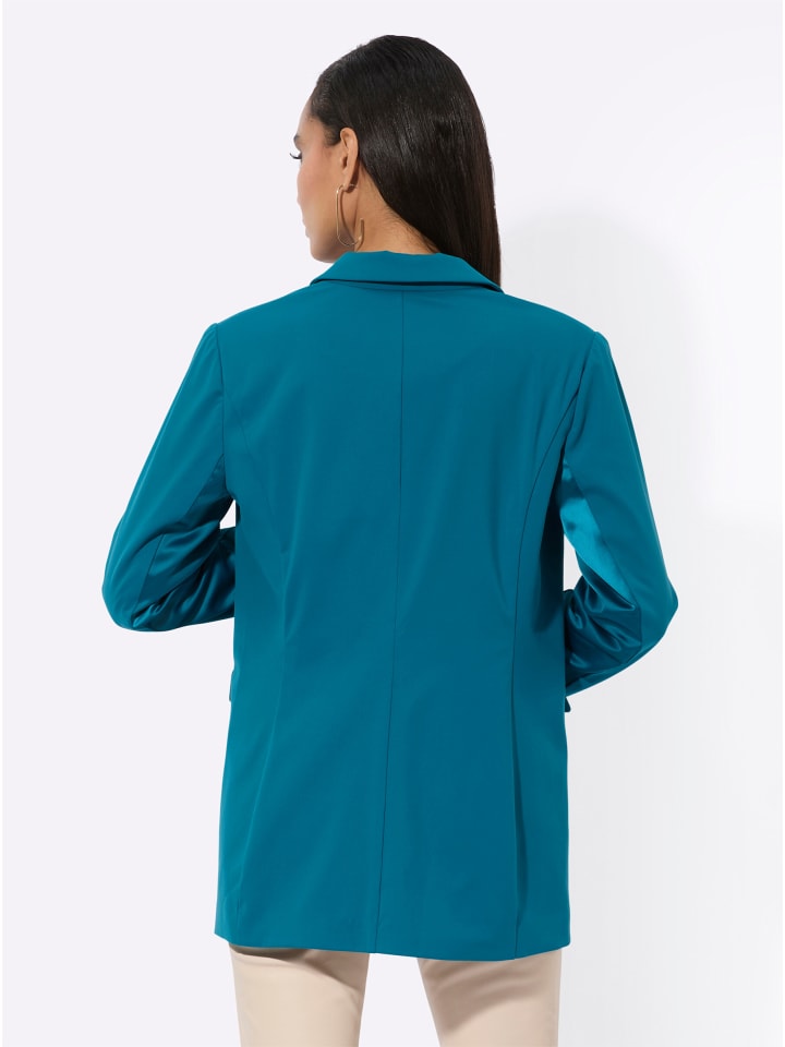 Если вы ищете отличную моду, вы найдете ее здесь! Облегающий трикотажный блейзер из высокоэластичной, инновационной высокотехнологичной ткани. Необычный воротник с лацканами создает эффект стройнения. Тонкие подплечники и корректирующие швы обеспечивают отличную посадку. Застежка на две пуговицы. Длинные рукава и два кармана с клапанами с окантовкой модно дополняются блестящей тканью. Полностью на подкладке.