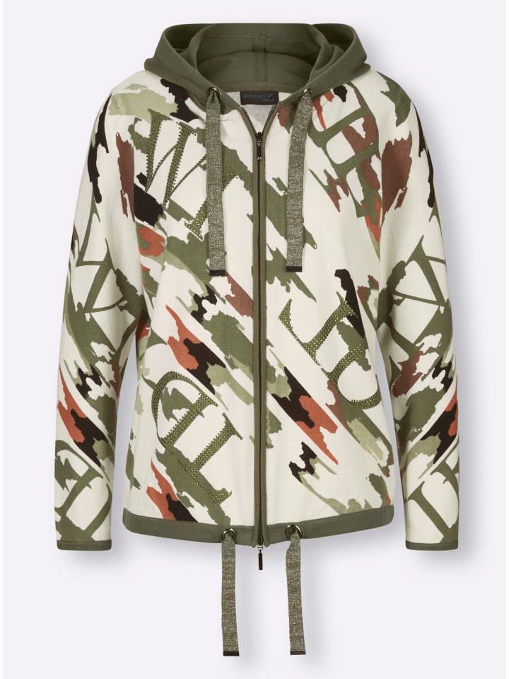 Стильный и удобный благодаря качественному хлопку! Кардиган с принтом и отделкой стразами. Однотонный капюшон с блестящими завязками, длинные рукава и кулиска с блестящими завязками по подолу создают эффект скрытности. Поддерживает инициативу Сделано в Африке (Cat Made in Africa).
