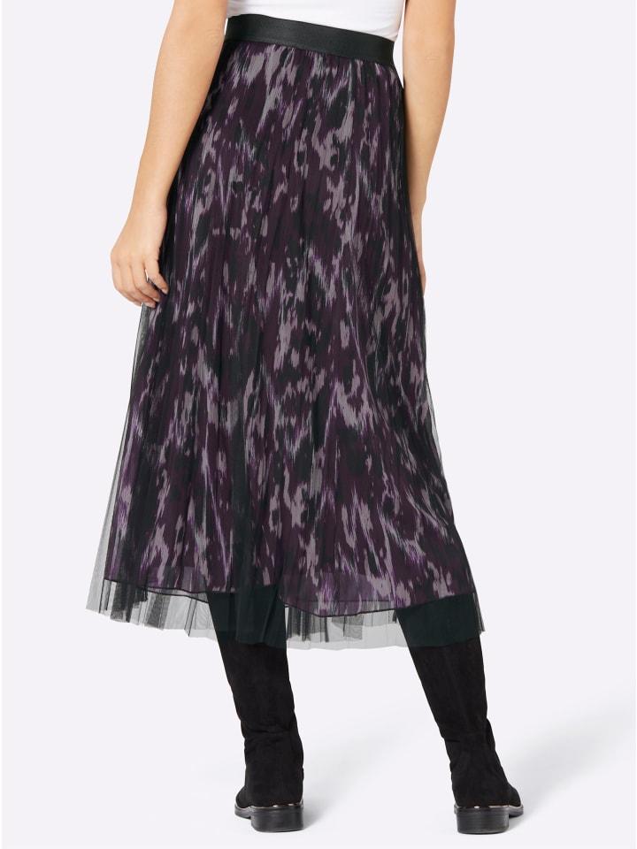 Экстравагантная юбка с привлекательным принтом. Благодаря многослойному крою, верхний слой которой выполнен из прозрачной плиссированной сетки, сквозь него красиво просвечивает шифоновая подкладка с цветочным узором. Особенно комфортна благодаря эластичному поясу по всему периметру.