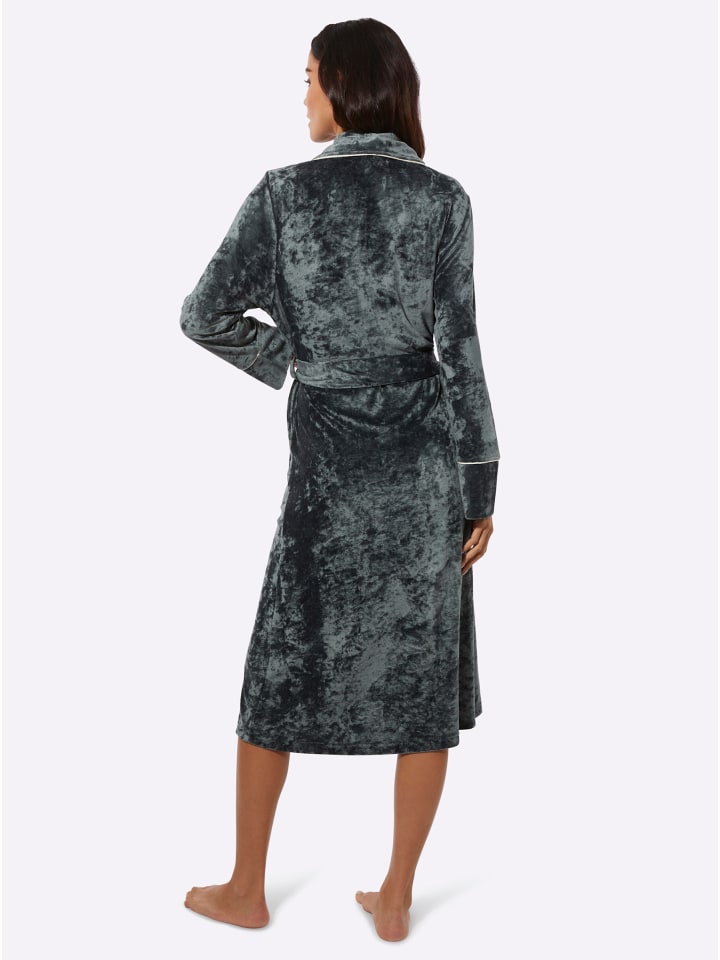Побалуйте себя этим уютным халатом от Wäschepur из мягкого, приятного для кожи велюра. Контрастная окантовка и элегантная вышивка в виде павлина добавляют элегантные акценты. Воротник-шалька, пояс-завязка и шлевки. Длинные рукава с широкой планкой. 2 боковых кармана.