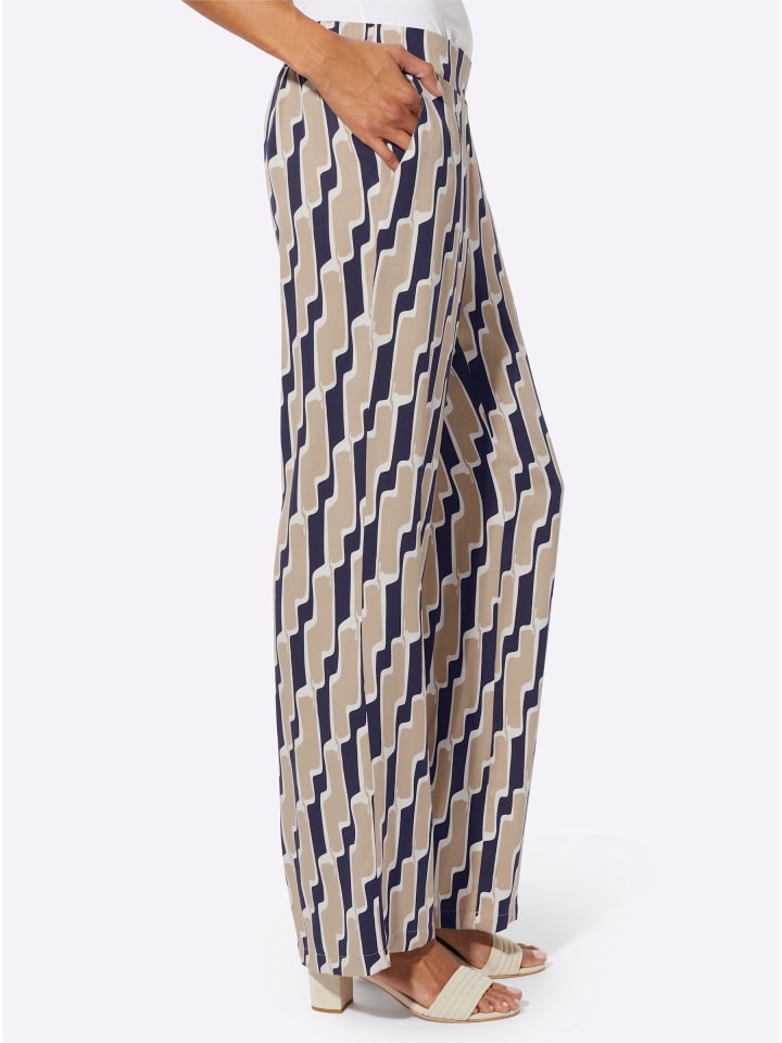 Эти брюки-палаццо очень модные, с модным графическим принтом и широкими, воздушными брючинами. Удобные благодаря эластичному поясу и боковым карманам. Ширина до щиколотки примерно 56 см. Ремень в комплект не входит. Изготовлены из вискозы ECOVERO от Lenzing.