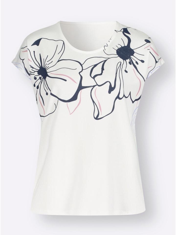 Вискоза качества ECOVERO от Lenzing впечатляет своим приятным комфортом. Рубашка с круглым вырезом, непринужденно спущенными плечами и цветочным принтом.