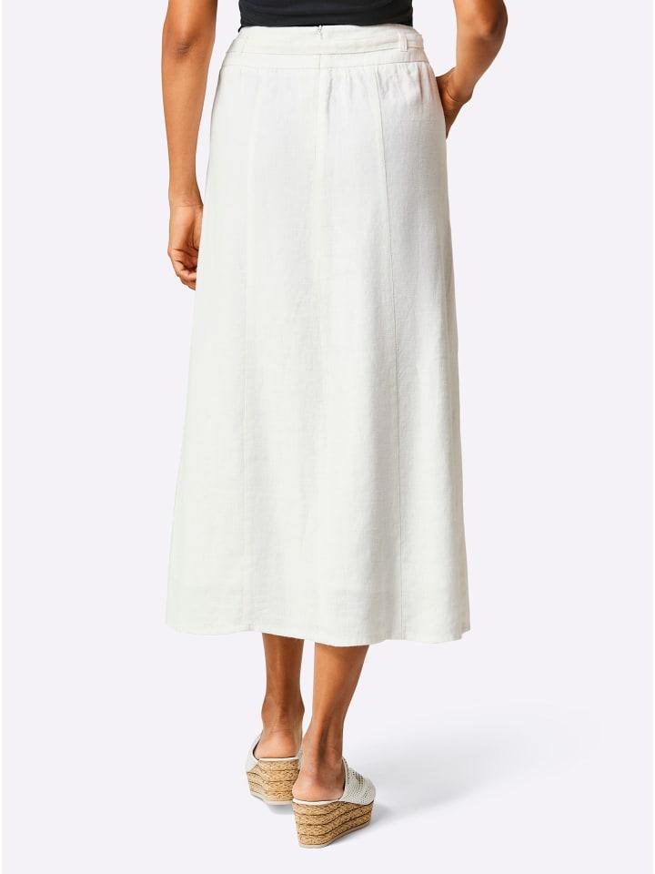 Юбки - идеальные спутники лета, особенно льняные. Эта льняная юбка впечатляет своим элегантным жатым эффектом и превосходными тактильными ощущениями: приятно прохладная для кожи и прекрасно дышащая. Тонкие сборки под фигурным поясом. Изящная застежка-молния сзади. Завязывается поясом.