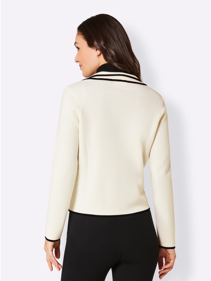 В привлекательном цветовом контрасте: мериносовый трикотажный блейзер с высококачественной миланской вязкой - эксклюзивный натуральный продукт из мериносовой шерсти премиум-класса. Очень тонкий, супермягкий и невероятно удобный. Облегающий крой с экстравагантным воротником с двойными лацканами и моделирующими фигуру венскими швами. Пуговица с выгравированным логотипом. Два кармана с клапанами.