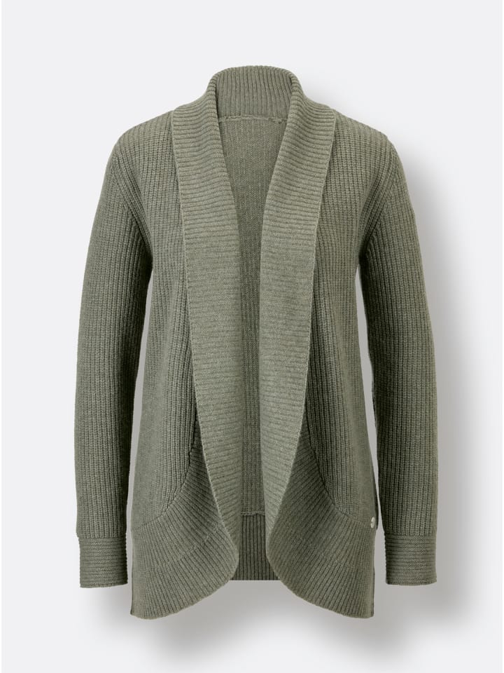 Кардиган из кашемира и мериноса: побалуйте свою кожу этим нежным, мягким и роскошным изделием. Несравненно тонкий, мягкий и обладает климат-регулирующими свойствами. Меланжевый, смешанного плетения. Удлиненный фасон с широким шалевым воротником. Подвеска с логотипом из перламутрового шелка.