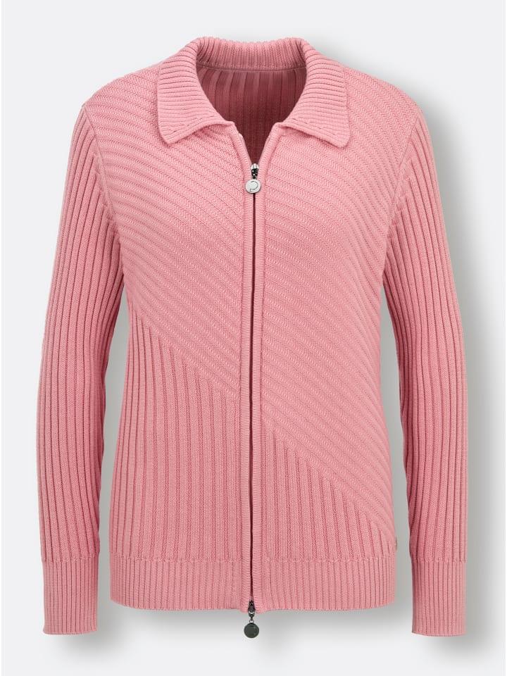 Кардиган из пима-хлопка. Изысканная вязка с диагональным рельефным узором. Отложной воротник и подол отделаны резинкой. Двусторонняя молния с тисненым логотипом. Подвеска с перламутровым логотипом. Поддерживает инициативу Хлопок, сделанный в Африке.