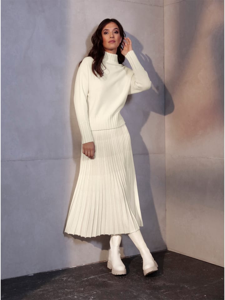 Эта юбка из мериносовой шерсти облегает фигуру благодаря гладкой, тонкой вязке и красивому широкому плиссированному подолу. Тщательно выполненная юбка с трикотажным поясом, скрывающим широкую, удобную резинку.